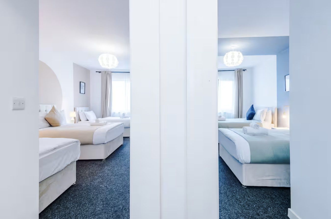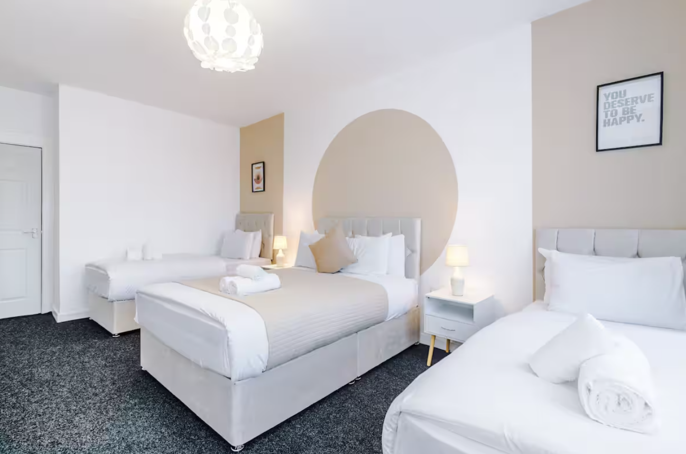 Prime location for families, groups and couples. Walk to: ā½ Old Trafford ā“ļø Salford Quays (0.5mi) š„ MediaCity šļø Lowry Outlet Mall š½ļø Bars & restaurants š Anchorage tram stop (0.1mi) Metro/Tram Access: š Manchester City Centre in 10 mins by tram or 5 mins by Uber š¤ Co-Op Live is 25 mins by tram šŖ Heaton Park is 30 mins by tram or 20 mins by Uber Enjoy: š æļø Free secure parking š¶ Fast WiFi šļø 24/7 on-site security Perfect for: ā¤ļø Couples šØāš©āš§ Families š¼ Business stays