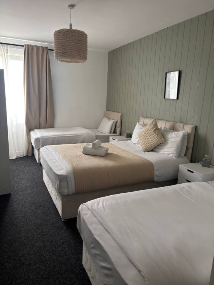 Prime location for families, groups and couples. Walk to: ā½ Old Trafford ā“ļø Salford Quays (0.5mi) š„ MediaCity šļø Lowry Outlet Mall š½ļø Bars & restaurants š Anchorage tram stop (0.1mi) Metro/Tram Access: š Manchester City Centre in 10 mins by tram or 5 mins by Uber š¤ Co-Op Live is 25 mins by tram šŖ Heaton Park is 30 mins by tram or 20 mins by Uber Enjoy: š æļø Free secure parking š¶ Fast WiFi šļø 24/7 on-site security Perfect for: ā¤ļø Couples šØāš©āš§ Families š¼ Business stays