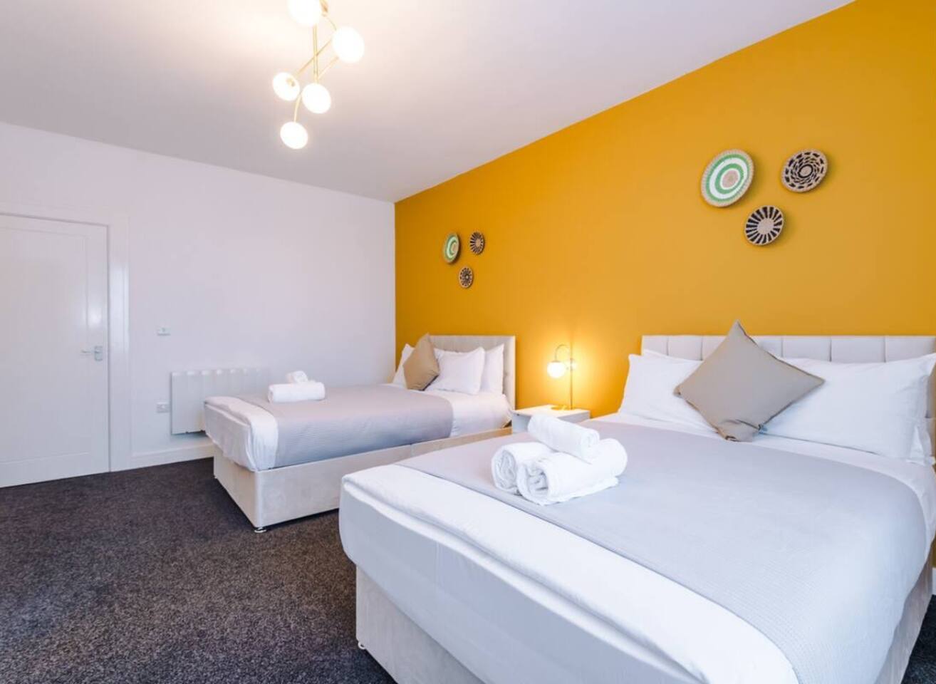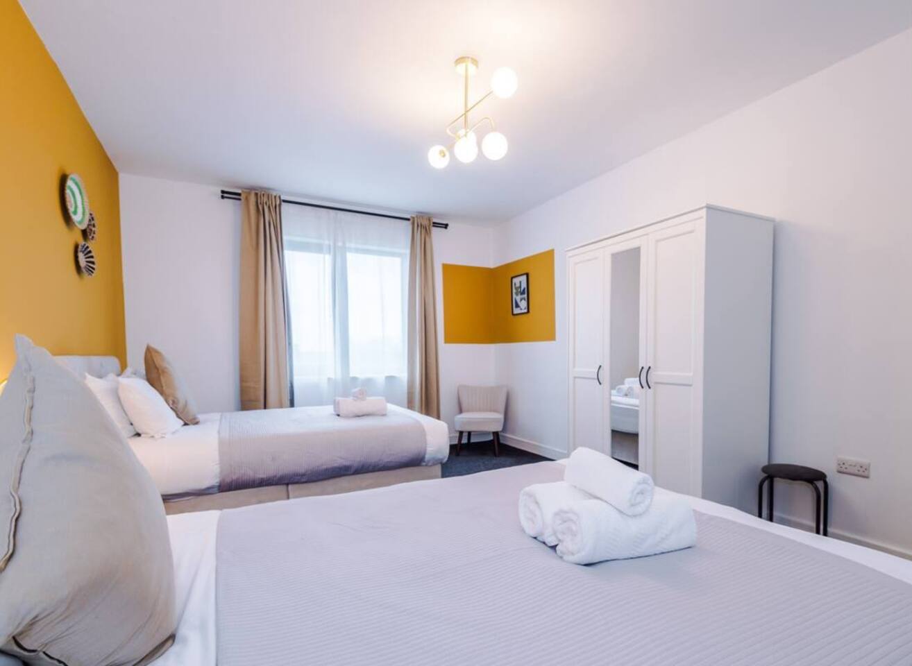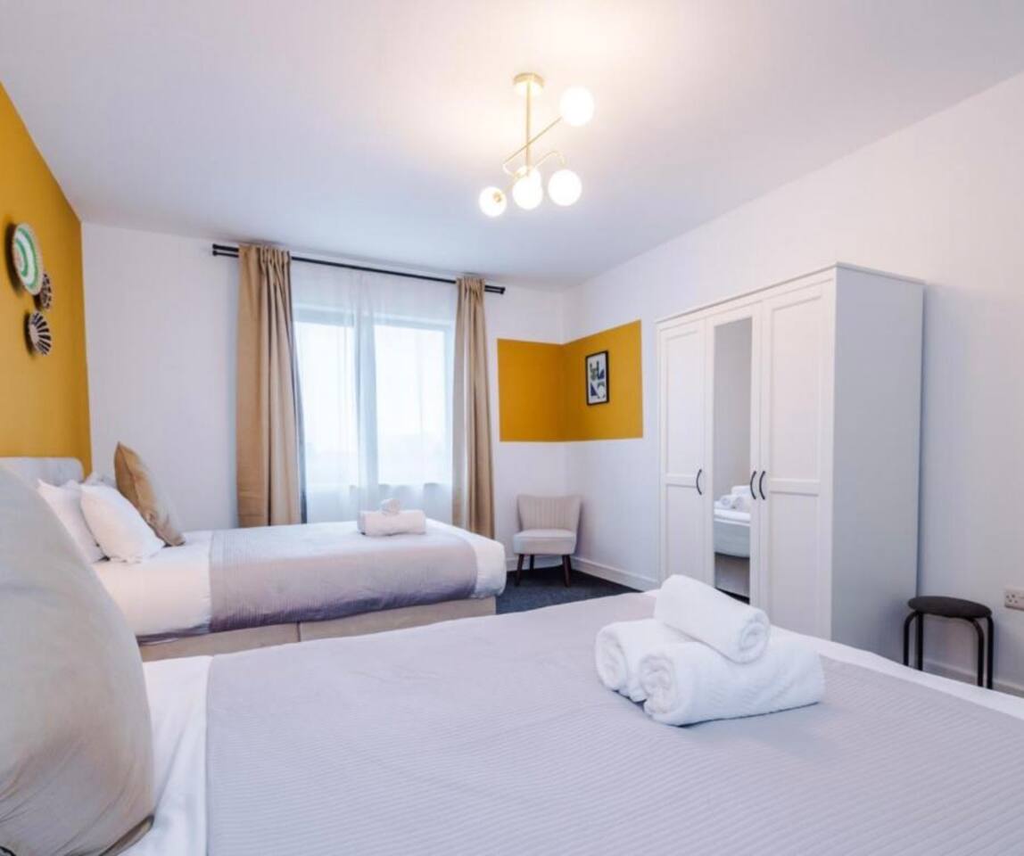 Entire private apartment to yourself: 1 X Bedroom 2 X Double Beds 1 X Bathroom 1 X Kitchen 1 X Living Room Free Parking