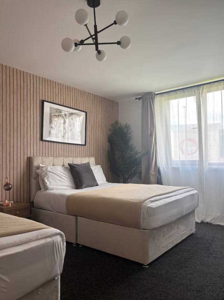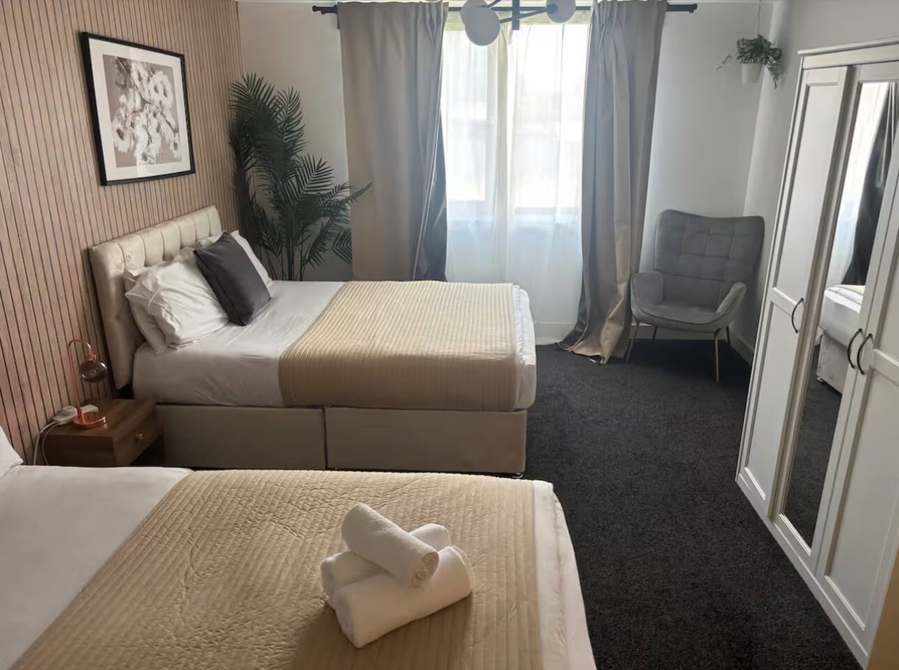 An entire private apartment to yourself. Comprising of: 1 X Bedroom 2 X Double Beds 1 X Kitchen 1 X Living Room 1 X Bathroom Free Parking included