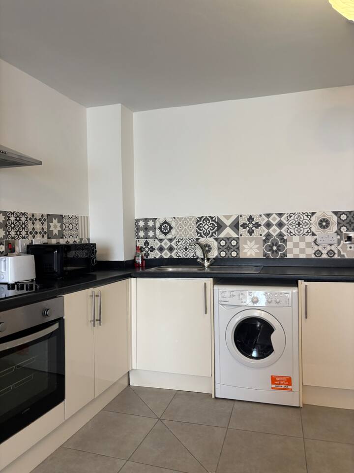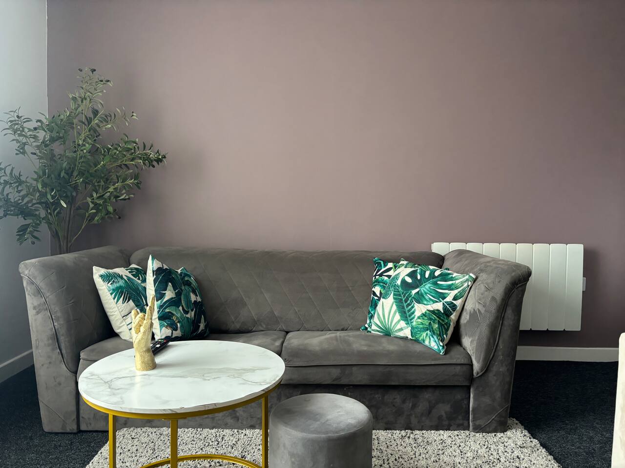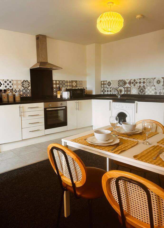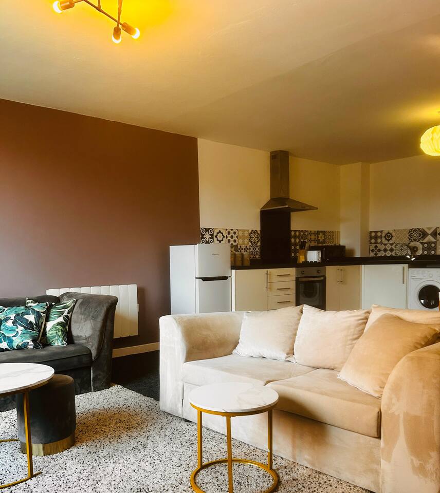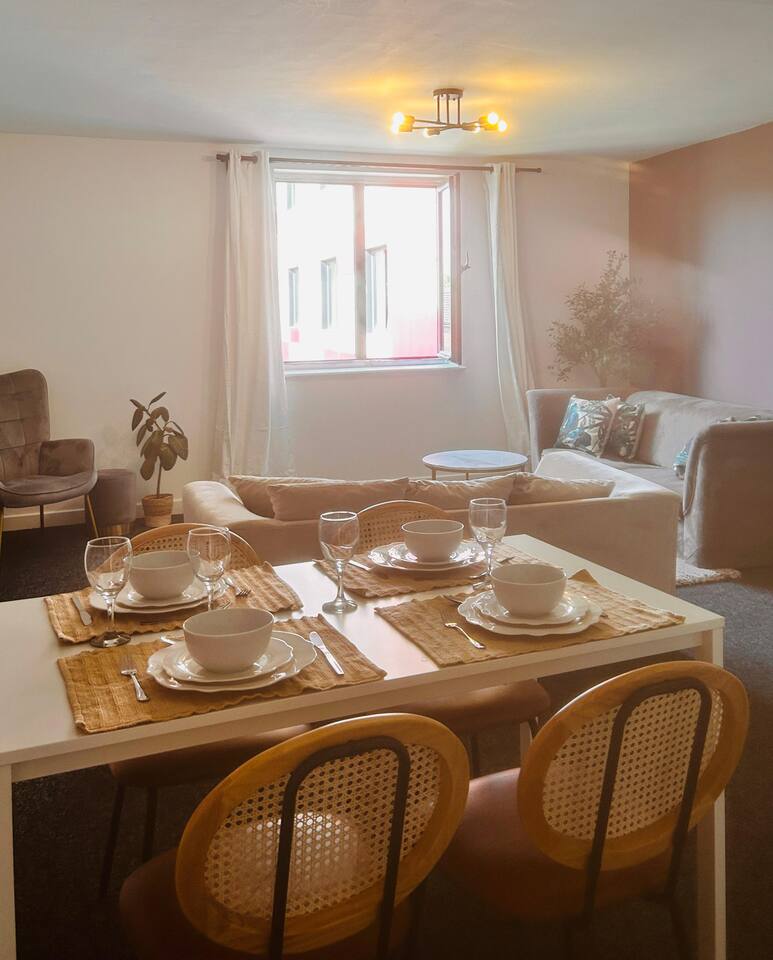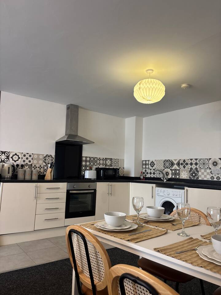 Our newest renovated flat, just opened! Sleeps 6 comfortably — two bedrooms, each with a double and a single bed. Free parking for multiple cars. Anchorage tram stop is 3 mins away, with a direct line to Heaton Park — perfect if you’re heading to Oasis.