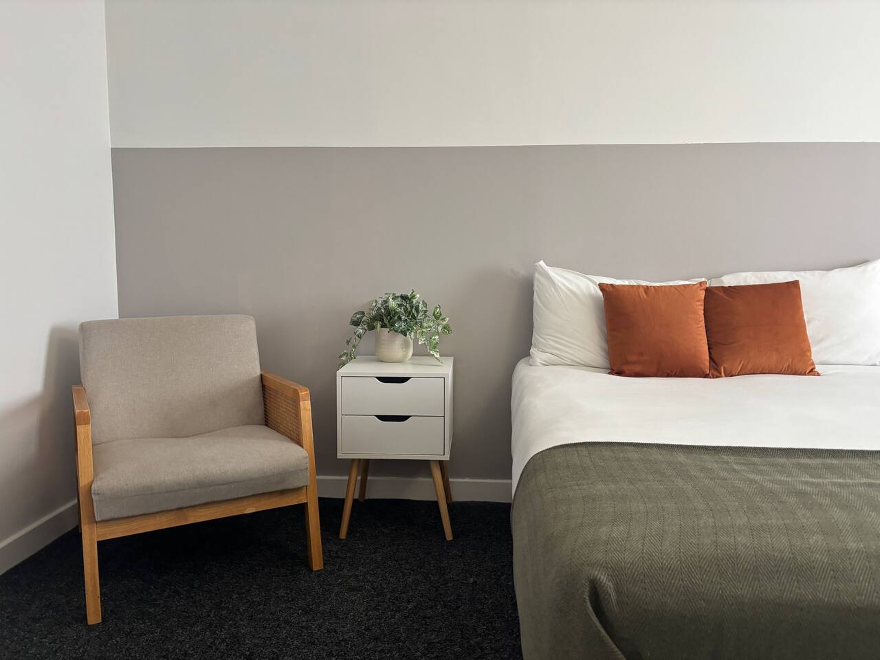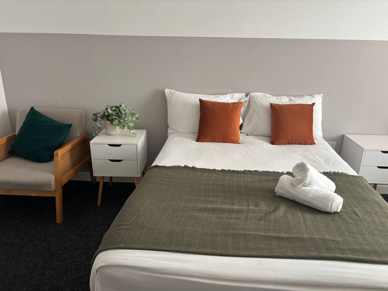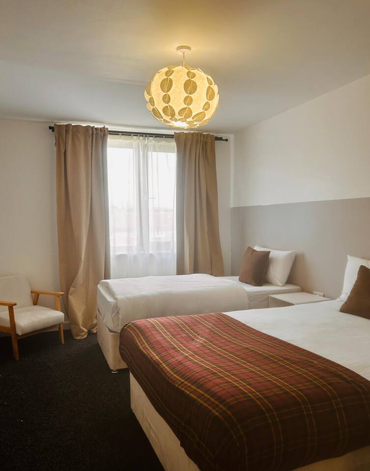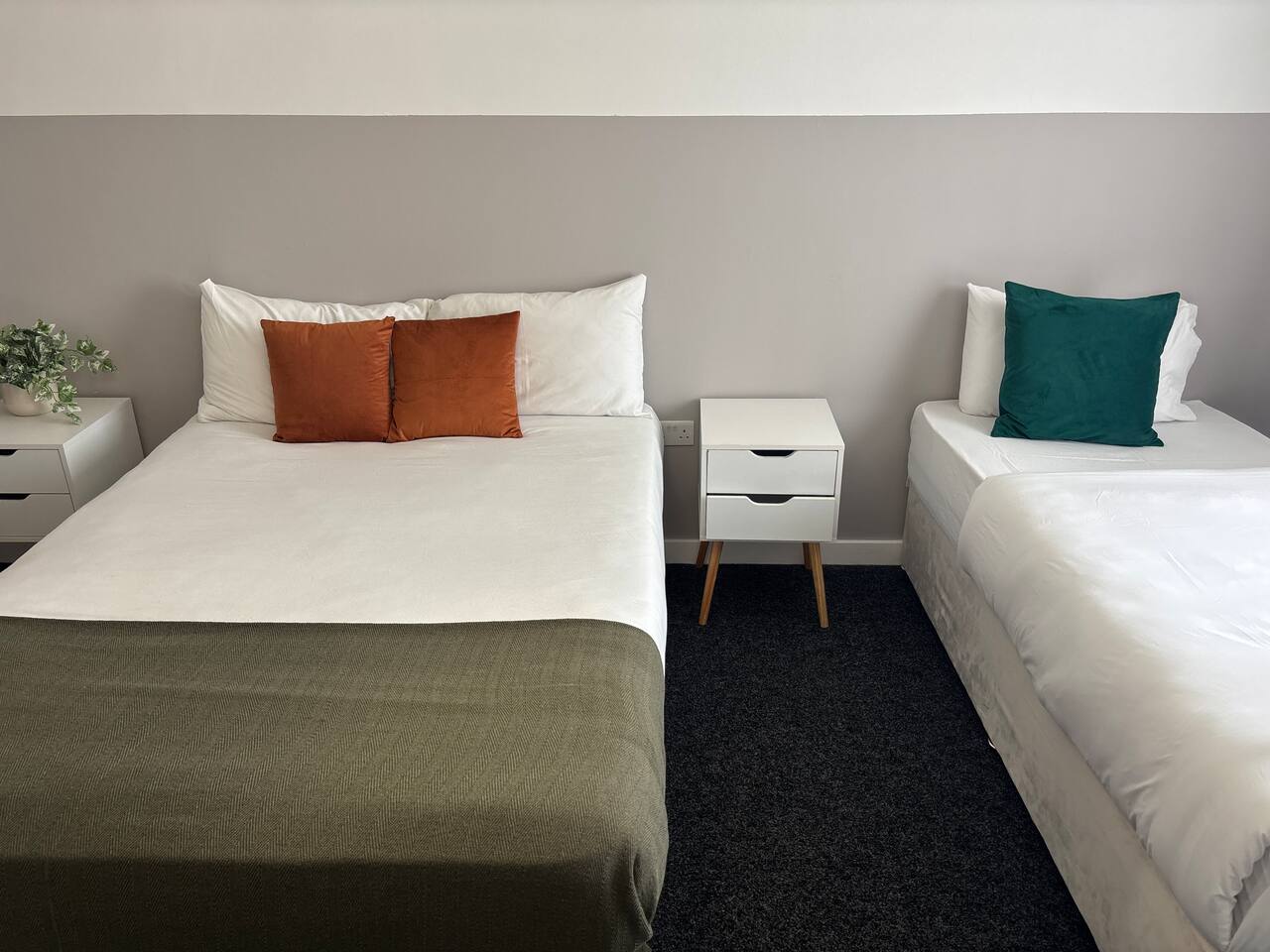 Our newest renovated flat, just opened! Sleeps 6 comfortably — two bedrooms, each with a double and a single bed. Free parking for multiple cars. Anchorage tram stop is 3 mins away, with a direct line to Heaton Park — perfect if you’re heading to Oasis.